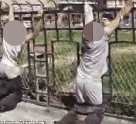 Soldiers decapitated bodies were tied to fences with their trousers around their knees in the horrifying images