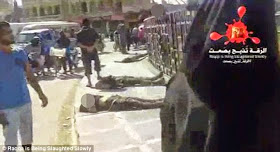 The decapitated bodies of Syrian soldiers were left scattered in the streets of Raqqa by ISIS fighters