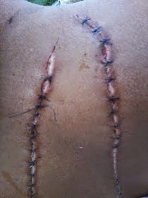 Julia needed dozens of stitches on her face and back to put the flaps of skin back together.