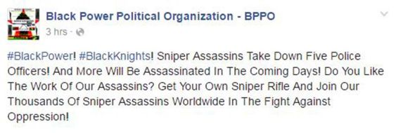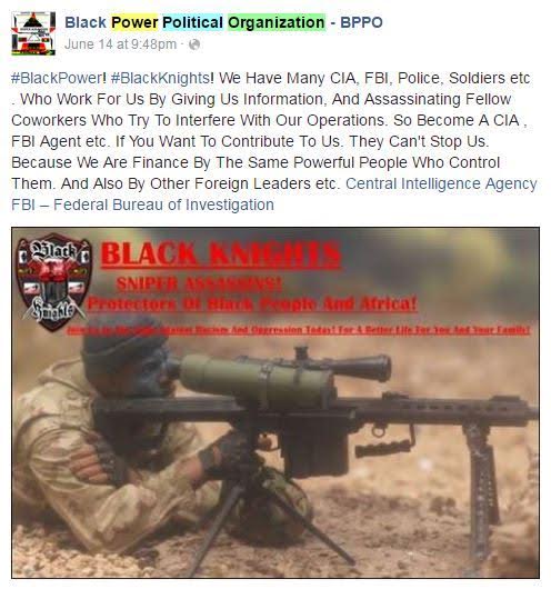 social media, the group wrote: “#BlackPower! #BlackKnights! Sniper