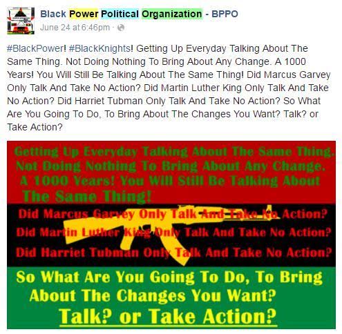 in the 1960s as a revolutionary black nationalist group. The group’s facebook page has been deactivated by Facebook.