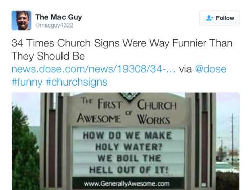 Just imagine you’re riding down the street, you look over and spot a church sign that’s saying way more than what time sunrise service starts. You break into laughter, bring out your camera and snap a shot just for Facebook/Instagram. Then all of the likes start rolling in. No one can resist a hilarious church sign. These are the ones we find hilarious. Don’t laugh alone share with friends.
