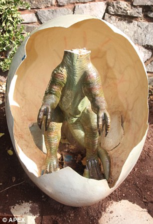 She was seen straddling the fibreglass baby T-Rex dinosaur that is on display at the Dinosaur Safari Trail attraction in Devon.