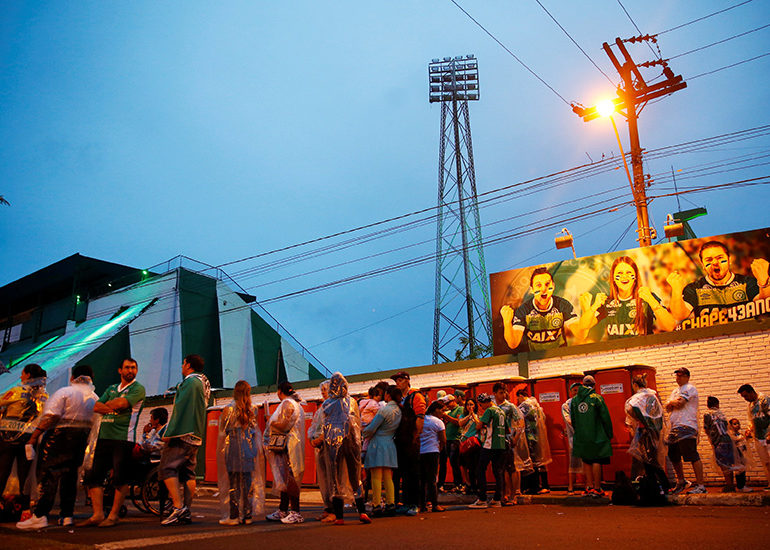 In Chapeco, a small agricultural town in southern Brazil, dozens of fans kept vigil at Chapecoense’s stadium, where an impromptu shrine swelled with fresh flowers and handmade posters. Green and black cloth was draped from fences, store fronts and construction sites.