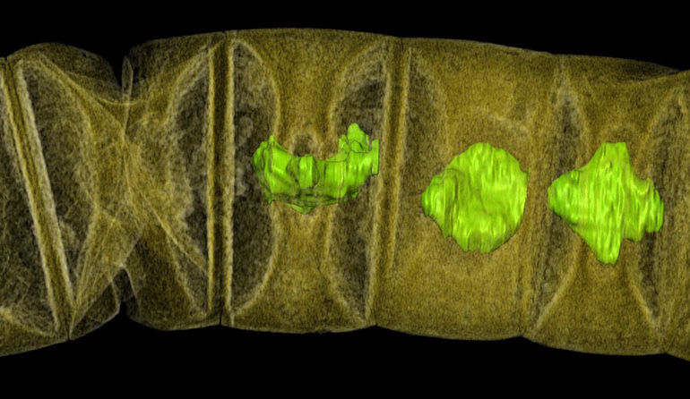 The fossils were found in phosphate-rich sedimentary rocks from Chitrakoot in central India. The thread-like fossils contained internal cellular features including structures that appear to be part of the machinery of photosynthesis, the process used by plants to convert sunlight into chemical energy.