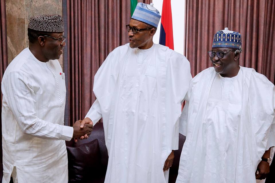 President Buhari receives APC Gubernatorial Candidate in Ekiti State Dr Kayode Fayemi accompanied by Nasarawa State Governor Al-Makura Tanko who was Chairman, All Progressives Congress (APC) Ekiti State Governorship Primary Election Committee in State House on 16th May 2018