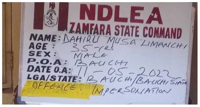 In another development, five members of a syndicate, which conducts fake recruitment into security agencies, have been arrested in coordinated operations in Zamfara, Kebbi, and Bauchi states. The leader of the gang, Yakubu Sani was first arrested in Gusau, Zamfara state. His criminal gang issues fake NDLEA employment letters and identity cards to unsuspecting members of the public for the sum of N400, 000 per person.
