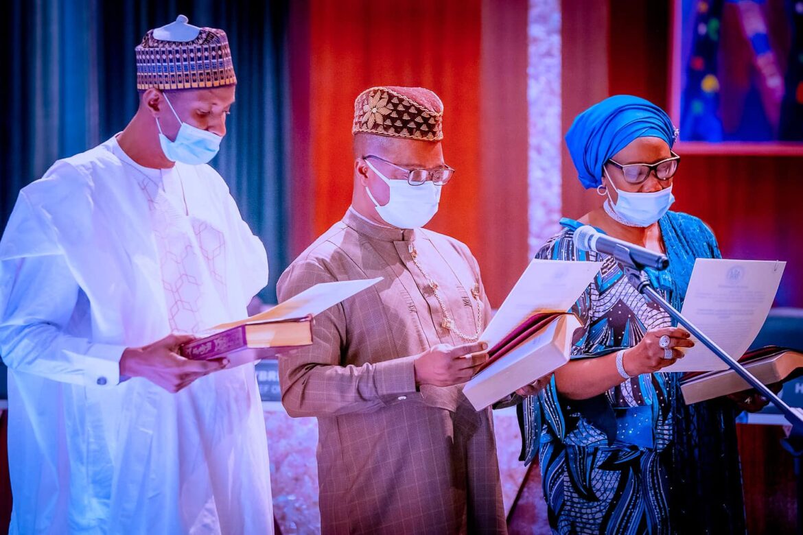 Others are the Minister of Industry, Trade and Investment, Otunba Niyi Adebayo; Communication and Digital Economy, Professor Ali Pantami; Power, Abubakar Aliyu; Labour and Employment, Dr Chris Ngige; and that of Human Affairs, Disaster Management and Social Development, Hajiya Sadiya Umar Farouq.