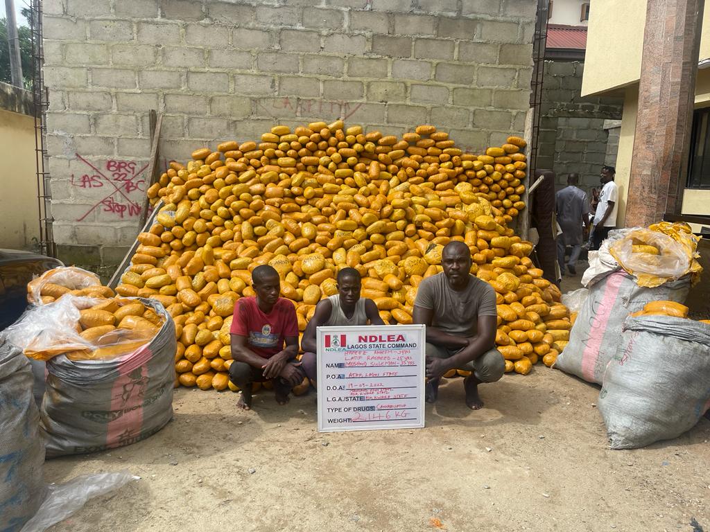 In a similar vein, NDLEA operatives in Lagos while acting on credible intelligence intercepted a Volvo truck loaded with 2,146 kilograms of cannabis at Sangotedo area of Ajah.