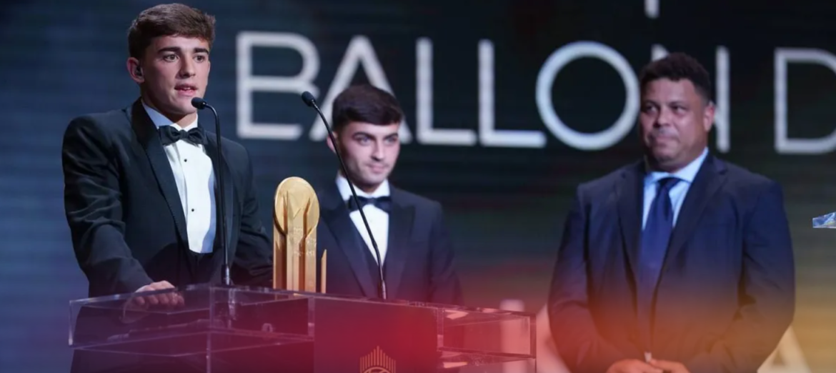 Barcelona teenager Gavi won the prestigious Kopa Trophy at the Ballon d’Or ceremony in Paris on Monday.