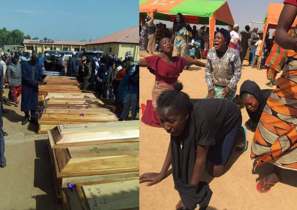 The arrival of the truck carrying the victim’s caskets triggered an outpour of emotions as relatives and friends wept helplessly. Children, aged men, and women as well as youth, were among those whose lives were cut off in their prime by the attackers.
