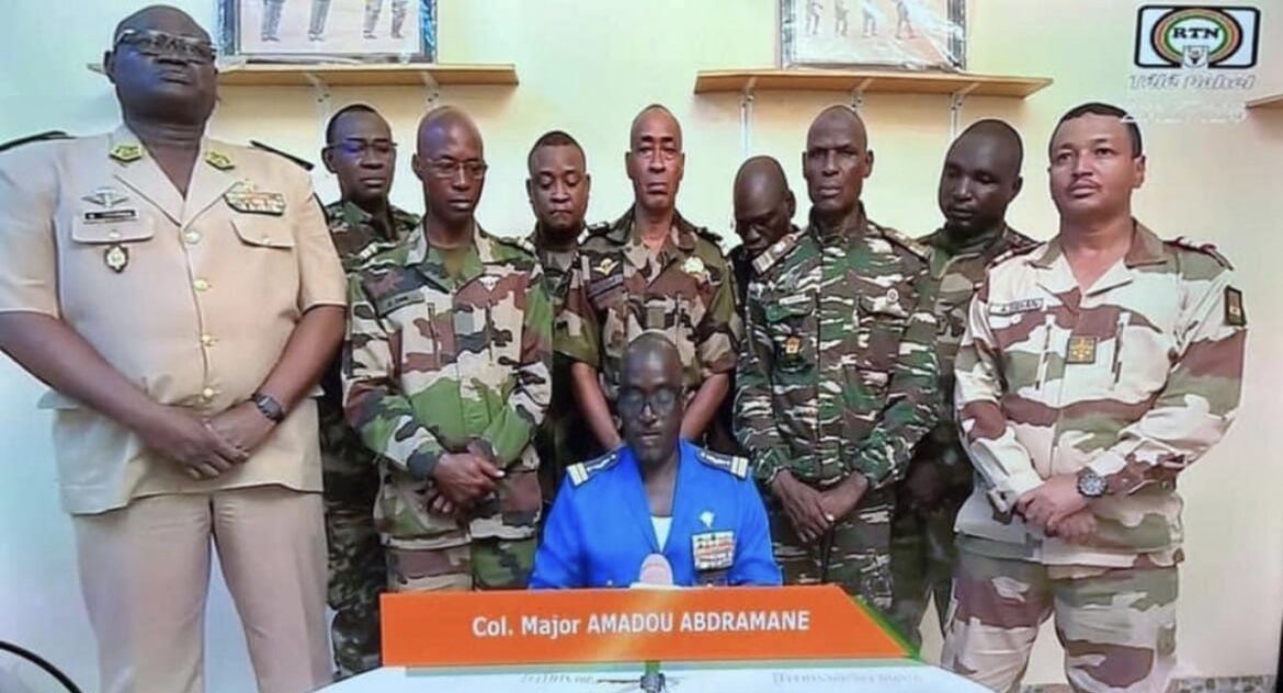 In his address, Colonel Major Amadou Abdramane announced the suspension of institutions and the closure of the country’s borders, justifying the coup d’état by “the continuing deterioration of the security situation” in Niger.