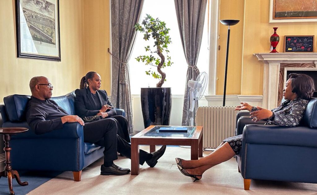 Former Nigerian presidential candidate Peter Obi and his wife held a strategic meeting on Thursday, October 16, with Commonwealth Secretary-General Hon. Shirley Ayorkor Botchwey at the Commonwealth Headquarters in London. The discussions focused on advancing youth empowerment, expanding access to education, and strengthening democratic institutions across member nations.